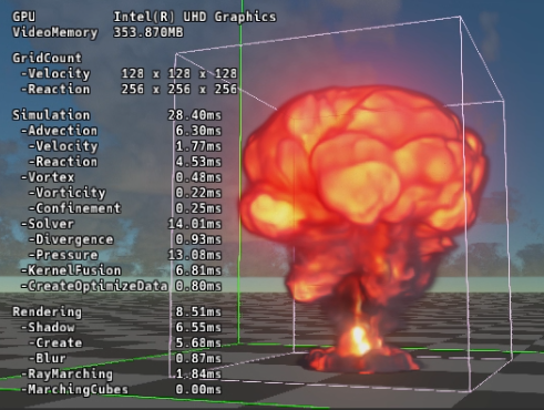 最後の画像にある通り、これらの最適化を施した結果、Intel UHD Graphics という統合型GPUであっても、十分な速度で大規模な流体シミュレーションが動作することを確認できました。